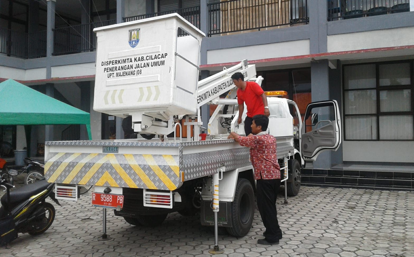 Petugas Dinas Perumahan Kawasan Pemukiman dan Pertanahan tengah memeriksan armada. Dinas Perumahan akan merger dengan PUPR. (haryadi nuryadin/bercahayanews.com)