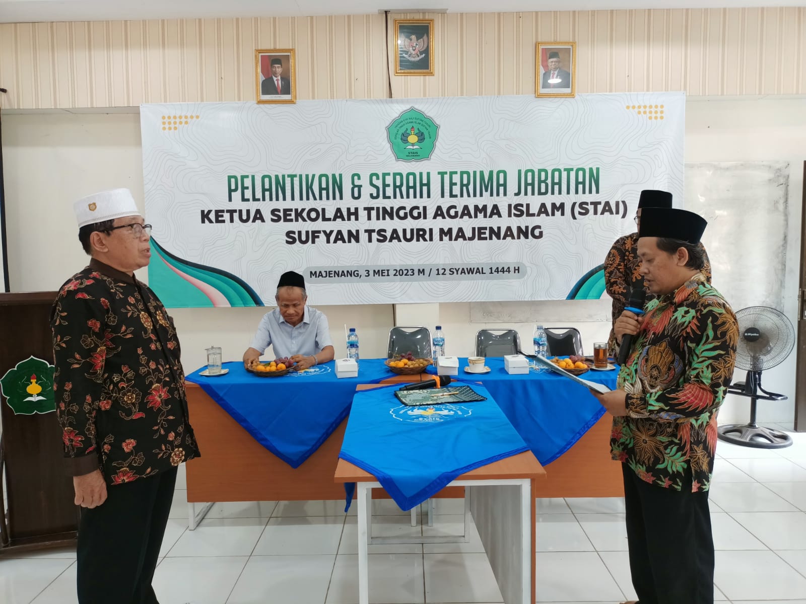 Prosesi pelantikan dan pengambil sumpah jabatan Ketua STAI Sufyan Tsauri, berlangsung di aula pada Rabu (3/5/2023). Kemudian berlanjut dengan serah terima jabatan dan dipimpin oleh Ketua Yayasan Kyai Haji Sufyan Tsauri Majenang, Drs H Masyhud MAg.