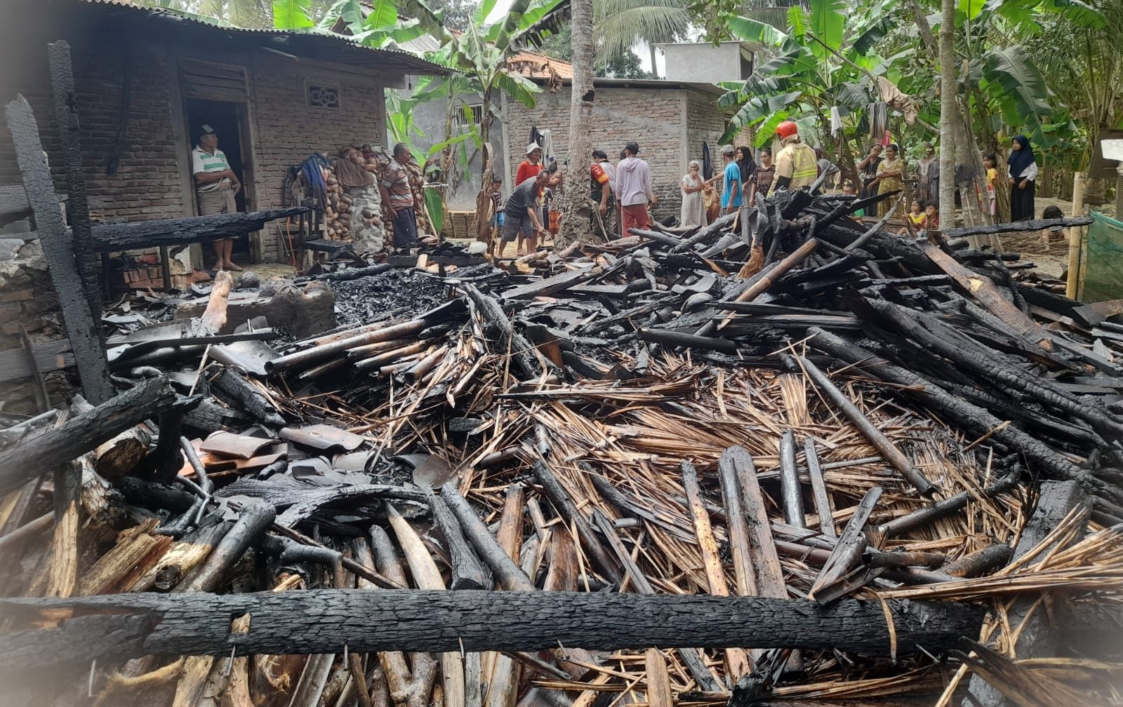 Sontak dia meminta pertolongan kepada anggota keluarga lainnya dan warga setempat. Di saat bersamaan, api terus berkobar hebat. Sebagian warga lalu berupaya melakukan pemadaman dengan peralatan seadanya. Upaya ini berhasil memadamkan api hingga tidak sempat menyebar.