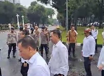 Tangkapan layar dari video di WAG. Hujan sempat mengguyur Jakarta, saat kepala daerah mengikuti gladi bersih pelantikan, Rabu (19/2/2025). (doc)