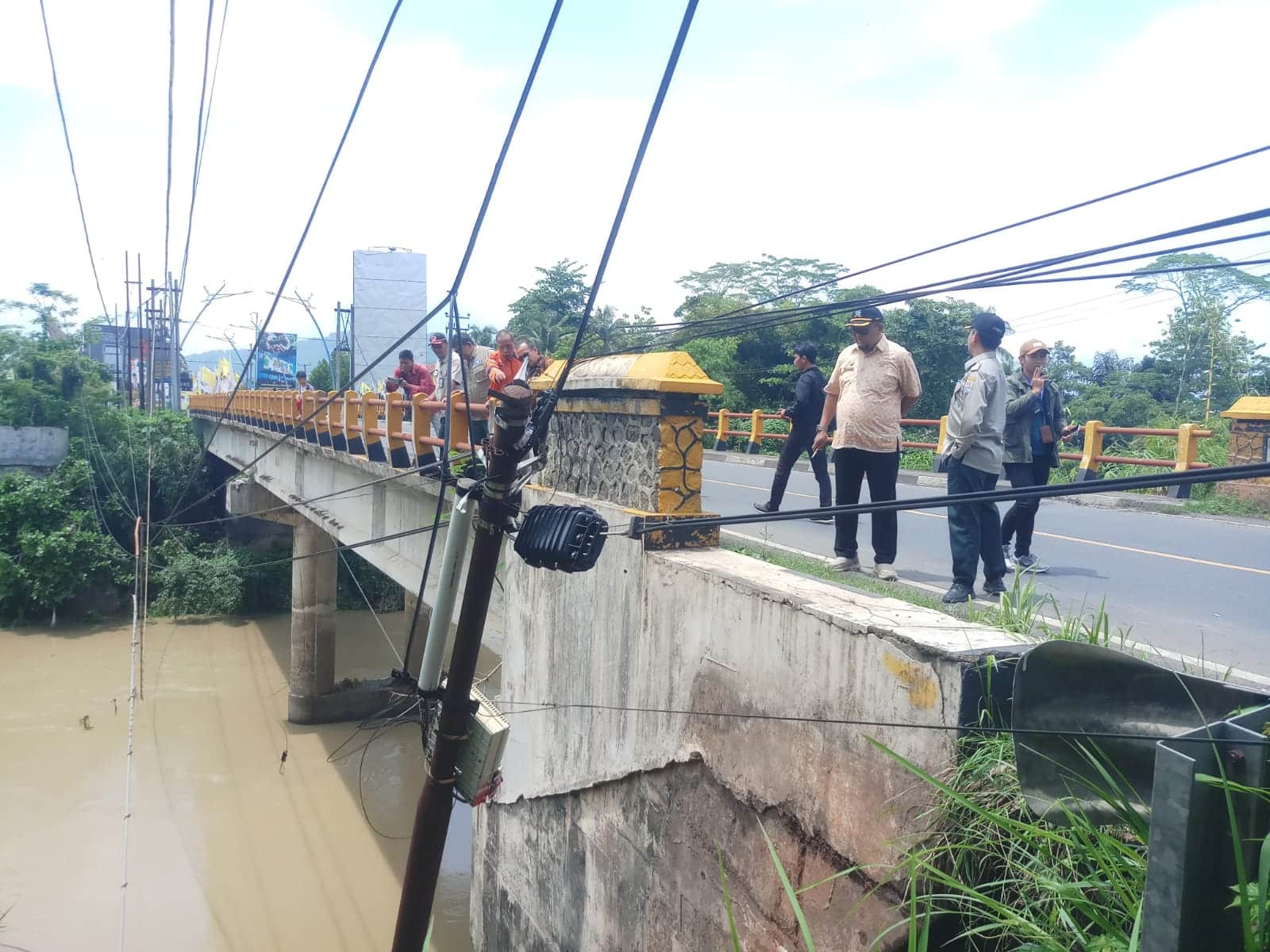 CILACAP – Jembatan di jalan nasional, tepatnya di atas Sungai Cijolang terancam ambruk. Ini setelah terjadi longsor di bagian sayap jembatan dan bisa mengurangi kekuatan jembatan.