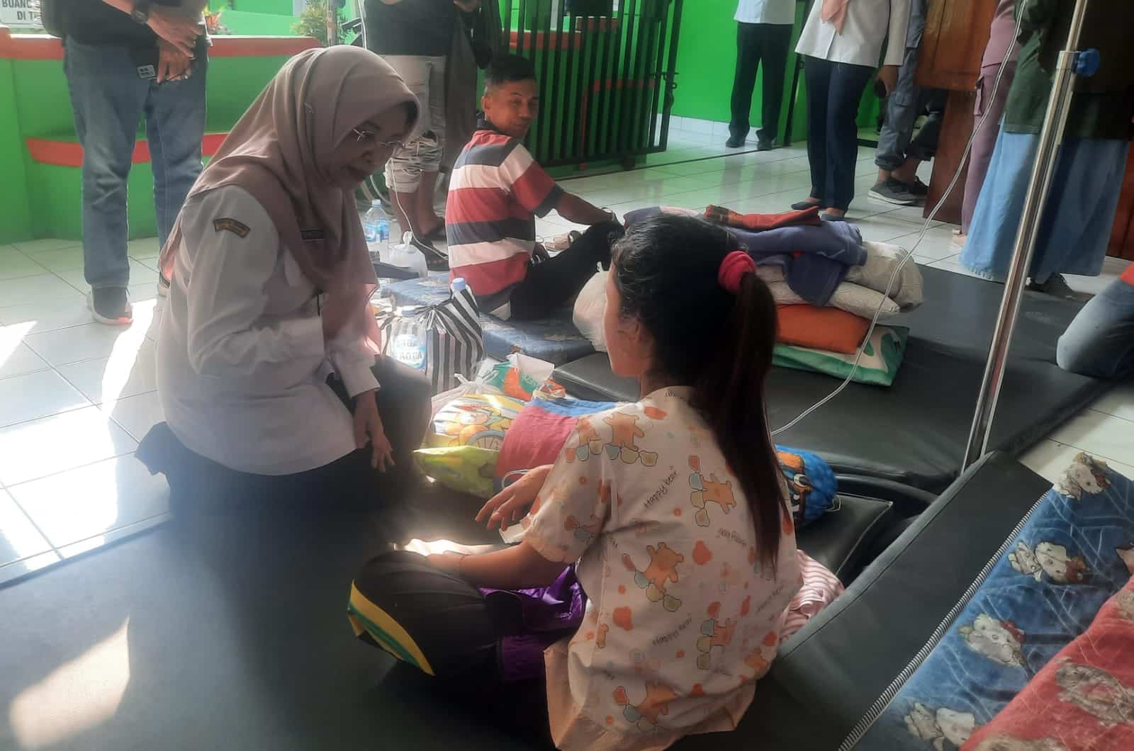 Kepala Dinas Kesehatan Kabupaten Cilacap, dr Pramesti Griyana Dewi tengah berbicang dengan korban keracunan makanan di Puskesmas Cimanggu 1, Jumat (13/10/2023). Jumlah korban keracunan makanan bertambah setelah ada 2 warga yang masuk puskesmas. (haryadi nuryadin/bercahayanews.com)