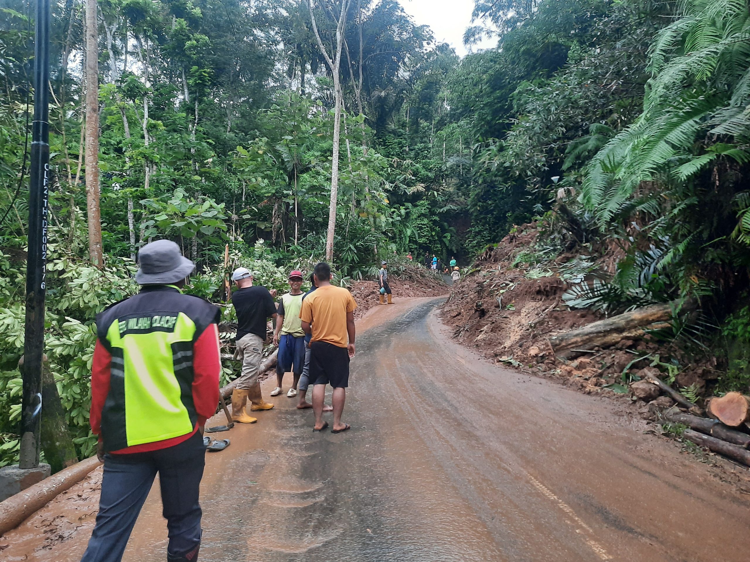 Pembersihan material longsor yang tutup jalan propinsi ini menggunakan alat seadanya. Hingga sekitar pukul 16.45, jalan sudah bisa dilalui kendaraan roda 4. Namun petugas memberlakukan sistim buka tutup karena masih ada sebagian badan jalan yang terutup tanah longsor.