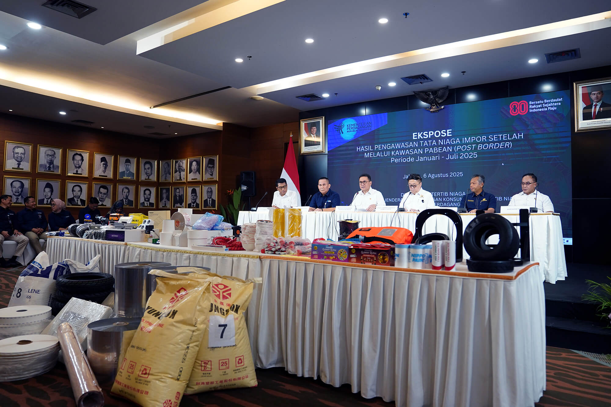 JAKARTA – Menteri Perdagangan, Budi Santoso, memimpin ekspose hasil pengawasan impor ilegal atas tata niaga impor setelah melalui kawasan pabean pada periode Januari-Juli 2025 di Kantor Kementerian Perdagangan, Rabu (6 Agustus).