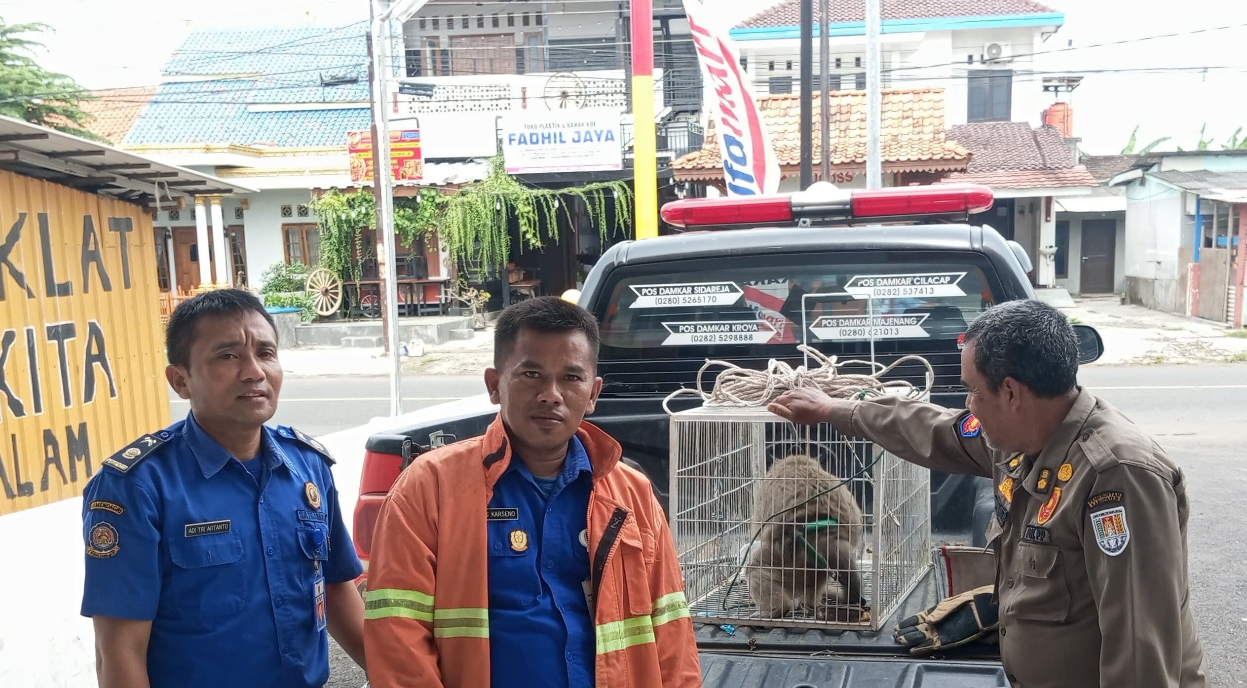 Merasa tidak nyaman lagi dengan monyet piaraan yang sering ngamuk, pemilik akhirnya menghubungi petugas Pemadam Kebakaran Cilacap. Dia meminta agar monyet ini “diamankan”.