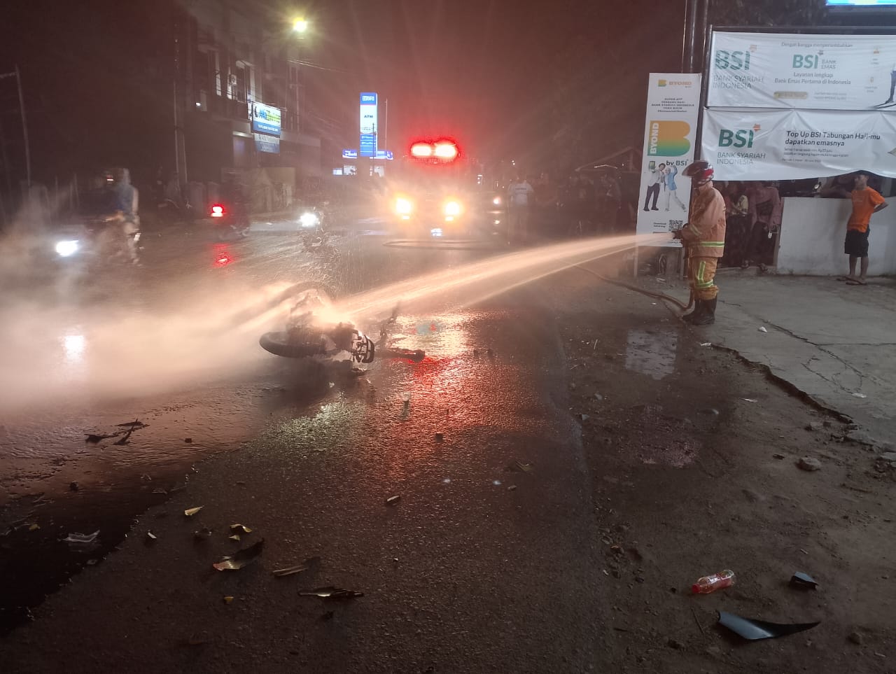 MAJENANG – 1 unit sepeda motor terbakar dalam insiden kecelakaan lalu lintas yang bermula dari balap liar di Jalan Diponegoro, Majenang, Minggu (27/7/2025) pukul 01.15 WIB. Insiden bermula dari aksi balap liar yang melibatkan sejumlah pelajar.