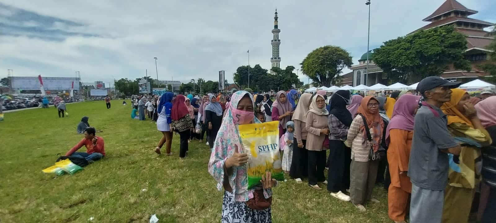 CILACAP – Pemkab Cilacap bersama BI dan Bulog, kembali gelar pasar murah di alun-alun Cilacap, Jumat (8/3/2024). Stok beras sebanyak 7 ton ludes hanya dalam beberapa jam saja.
