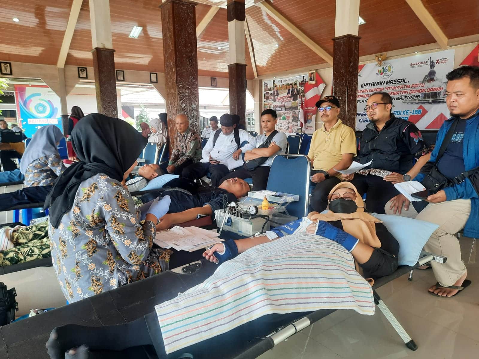 Selain sunatan massal, kegiatan di Majenang juga ada aksi donor darah. Warga memanfaatkan kegiatan sosial ini dan secara bergantian “setor darah” ke petugas PMI Cilacap. Sebelumnya, panitia juga menyerahkan santunan bagi anak yatim dari 5 kecamatan.