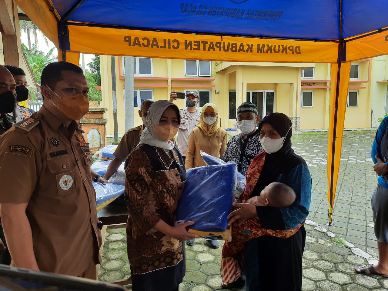 Penyerahan bantuan dari Pemerintah Kabupaten Cilacap melalui Dinas Perdagangan dan UMKM bagi seluruh PKL di sana.