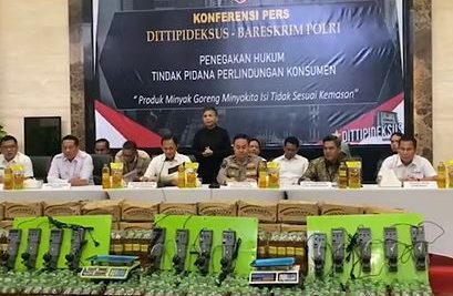 JAKARTA – Bareskrim Polri menetapkan satu tersangka dalam kasus Minyakita yang tidak sesuai takaran. Tersangka berinisial AWI kini menjalani penyelidikan lebih lanjut. Penetapan tersangka ini melalui konferensi pers di Mabes Polri. Mabes menyiarkannya secara langsung melalui akun Instagram @divisihumaspolri, Selasa (11/3/2025).