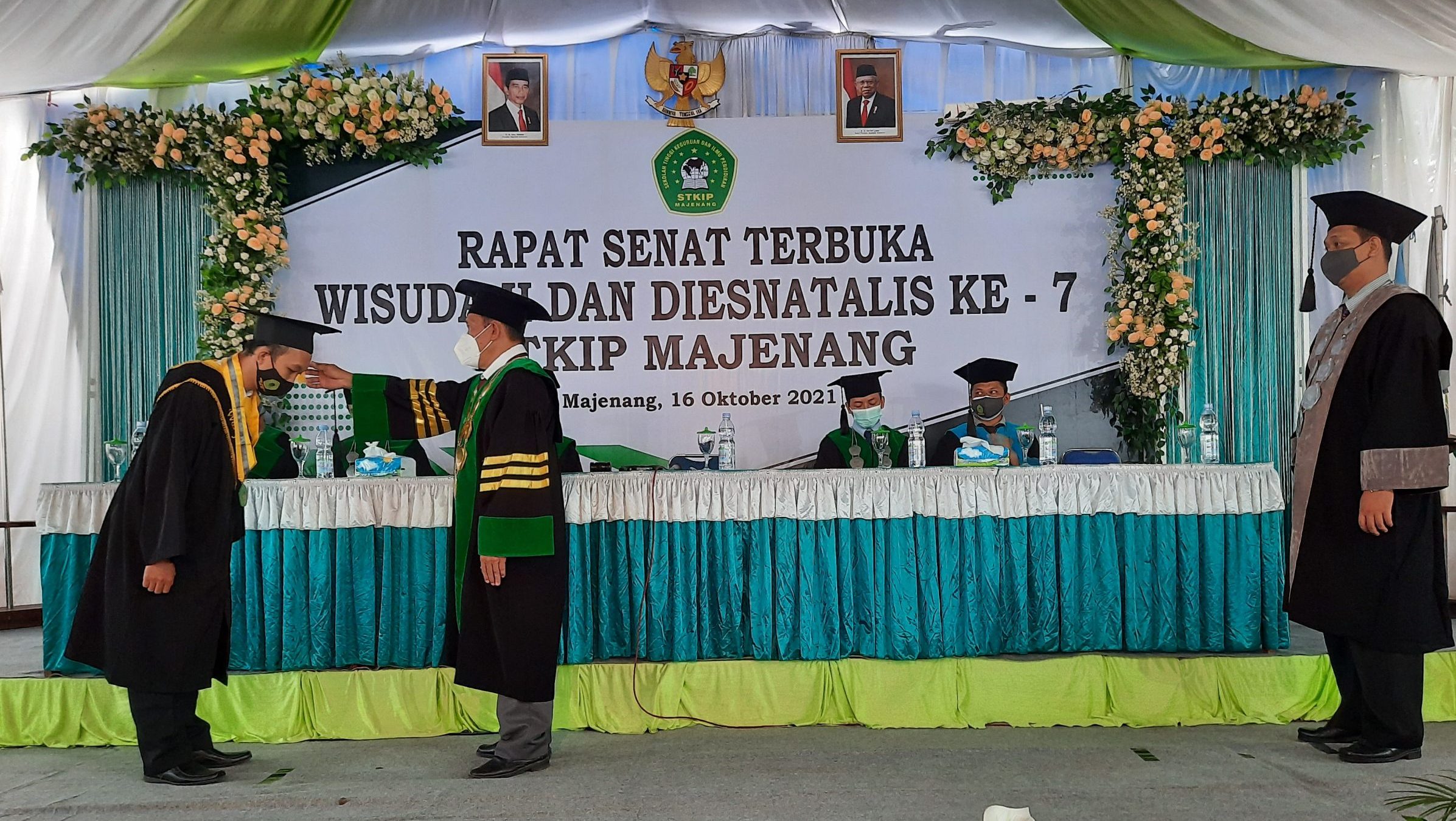 CILACAP – STKIP Majenang menggelar prosesi wisuda yang bertepatan dengan dies natalis ke 7, Sabtu (16/10/2021). Selama prosesi wisuda ke 2 ini, panitia menerapkan protokol kesehatan dengan ketat.