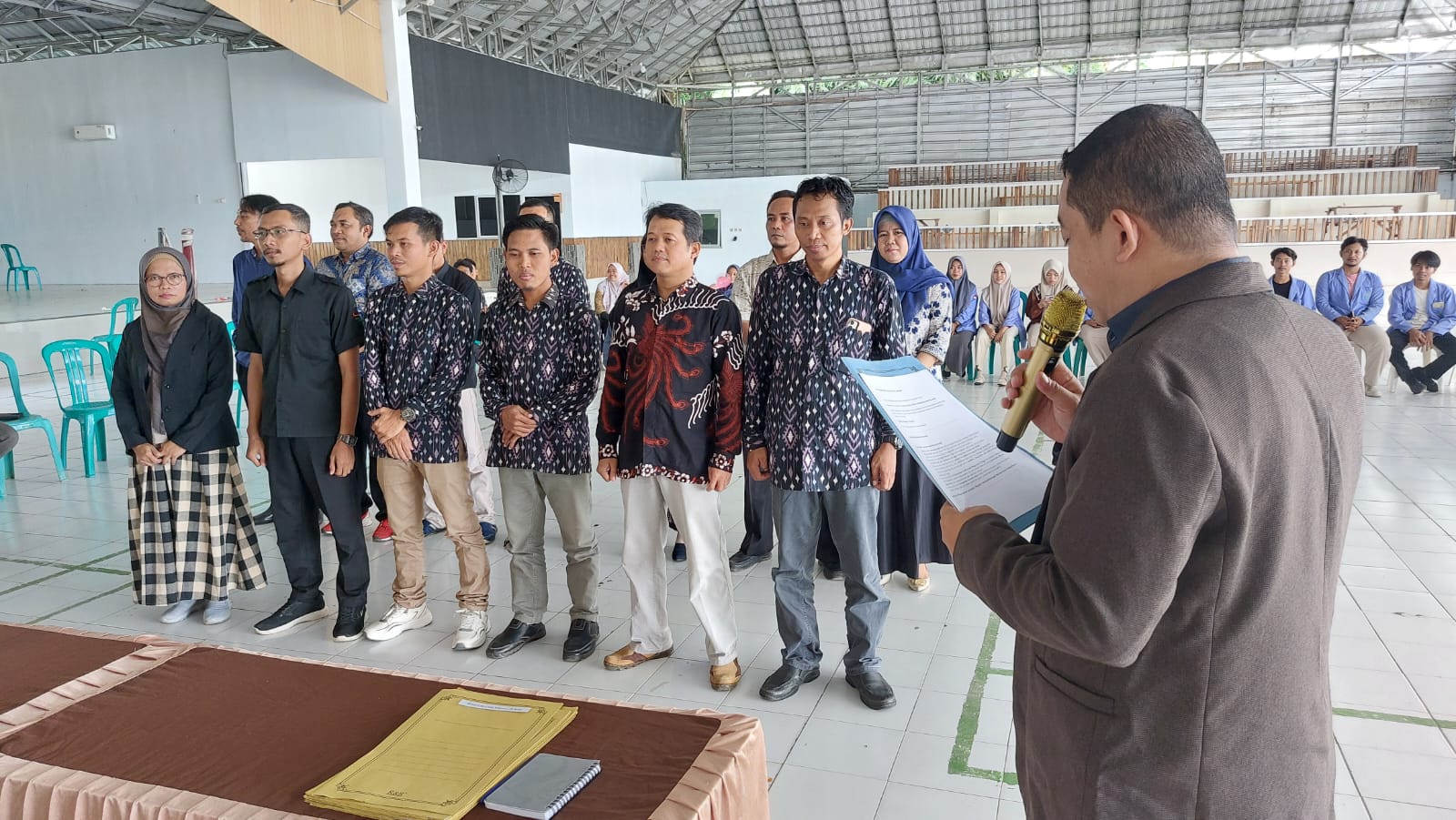 Rektor UNIKMA, Dr. Fikria Najitama, M.S.I. saat melantik pejabat struktural. UNIKMA merupakan transformasi dari STMIK Komputama menjadi universitas. (doc/humas unikma)
