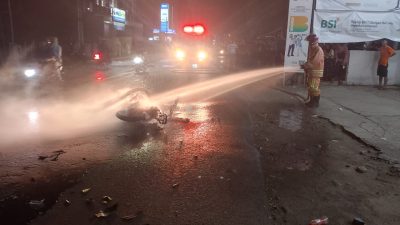MAJENANG – 1 unit sepeda motor terbakar dalam insiden kecelakaan lalu lintas yang bermula dari…