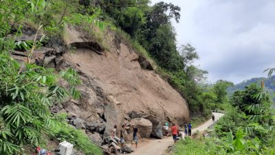 CILACAP – Tebing batu raksasa yang sempat memutus akses jalan kabupaten dan menghubungkan Desa Cibalung…