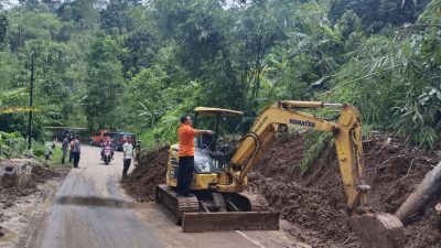 CILACAP – 3 lokasi tanah longsor yang menutup jalan propinsi di Cilacap, belum sepenuhnya tertangani….