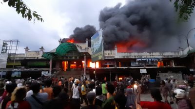 CILACAP – Kerumunan warga hambat proses pemadaman saat Pasar Kroya terbakar pada Kamis (23/12/2021). Warga…