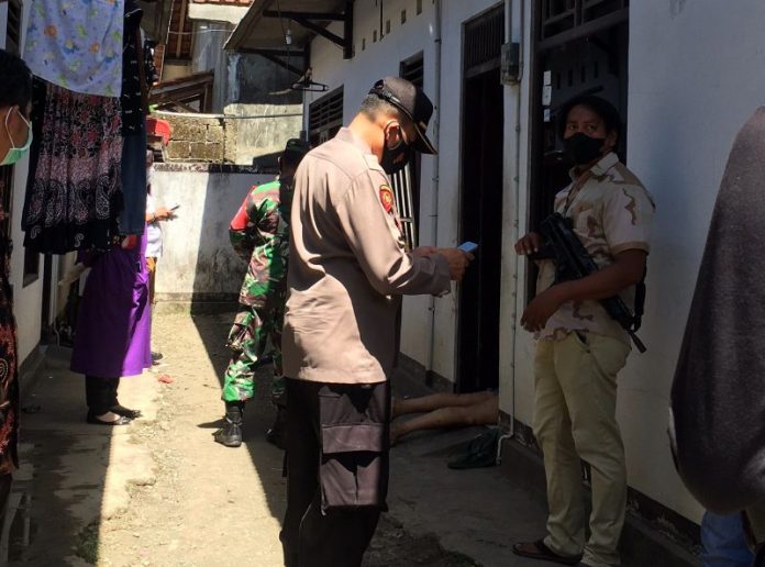 Petugas berjaga di TKP rumah kos di Jalan Kelinci, Cilacap usai kejadian pembacokan yang dilakukan RS terhadap ibunya sendiri, hingga meninggal dunia, Rabu (8/9/2021). (doc)