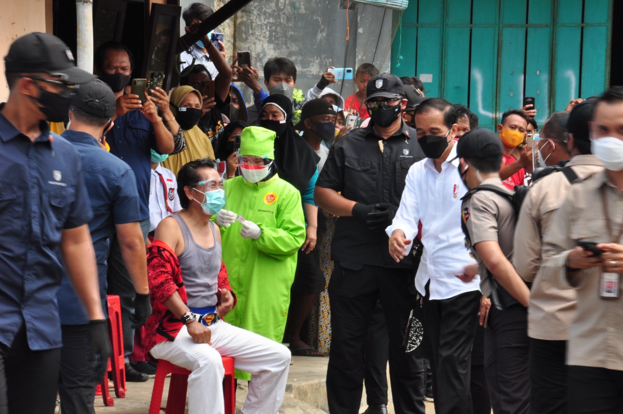 “Hari ini kita lakukan vaksinasi door to door di 9 propinsi. Dan ini dilaksanakan oleh BIN,” ujar Jokowi saat melihat langsung vaksinasi bagi warga di perkampungan nelayan Sentolo Kawat, Cilacap.